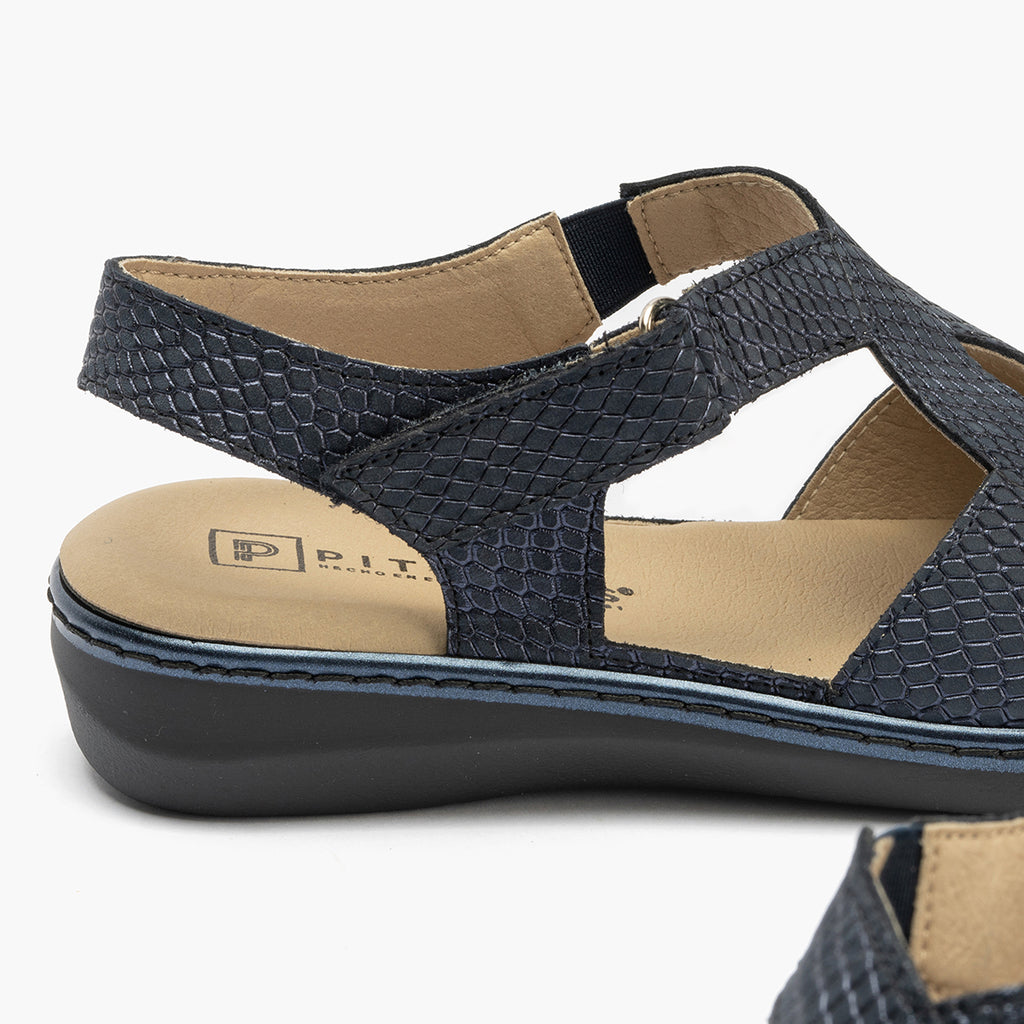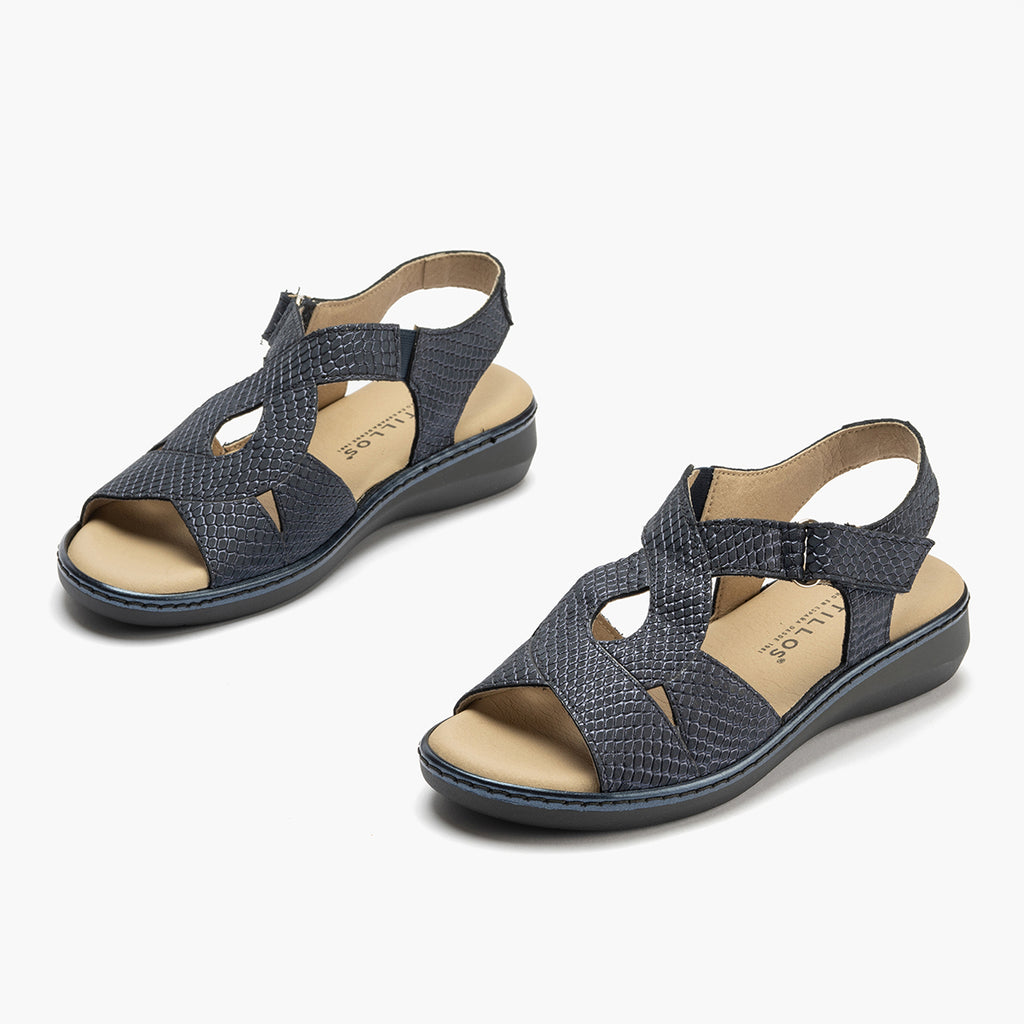 Sandalia mujer cruzada con velcro en piel combinada MARINO