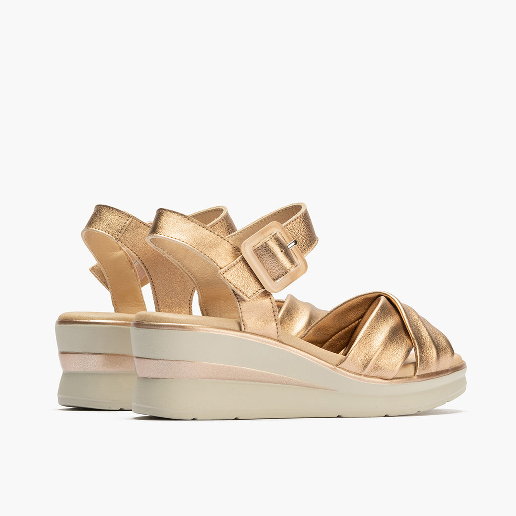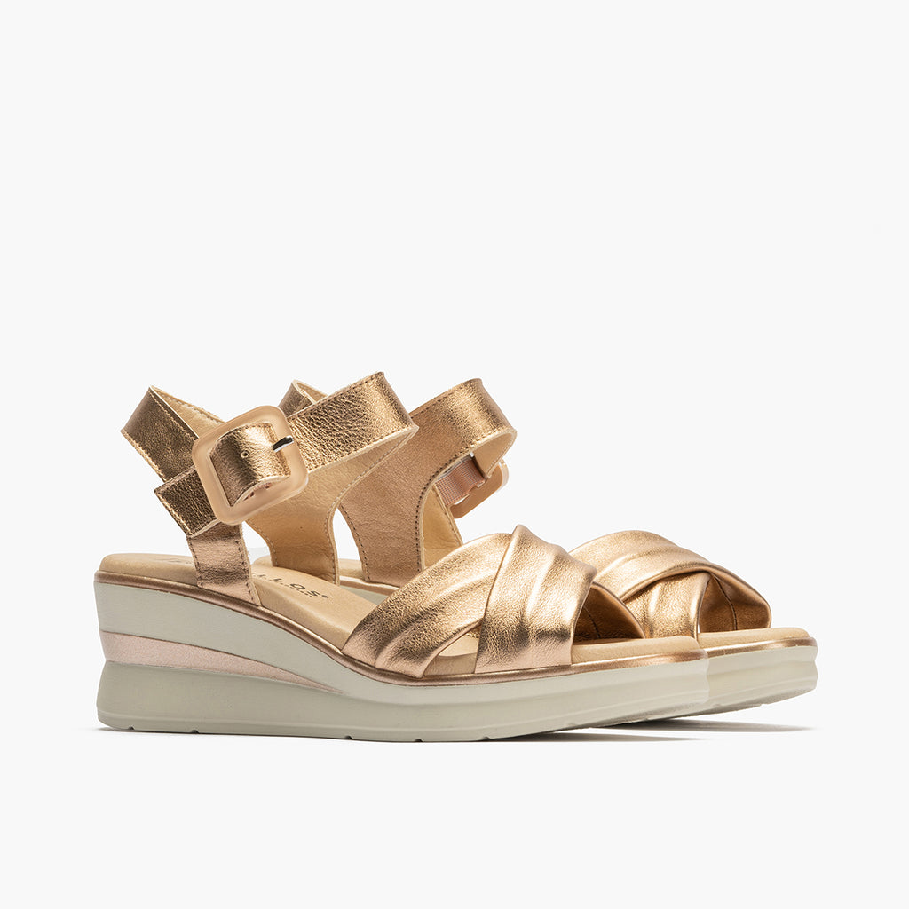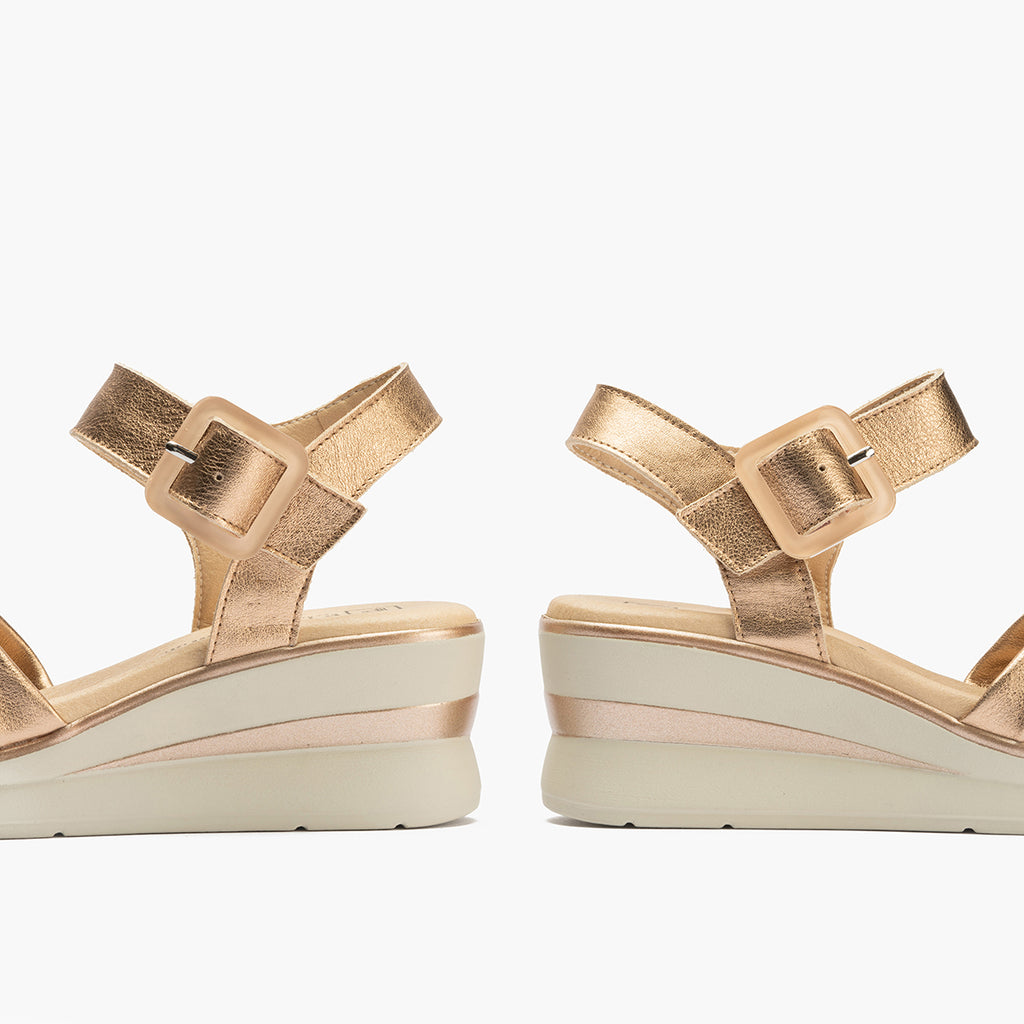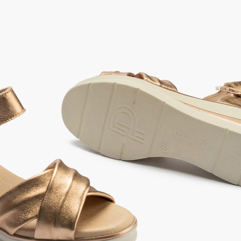 Sandalia mujer plataforma con hebilla en piel laminado ROSA