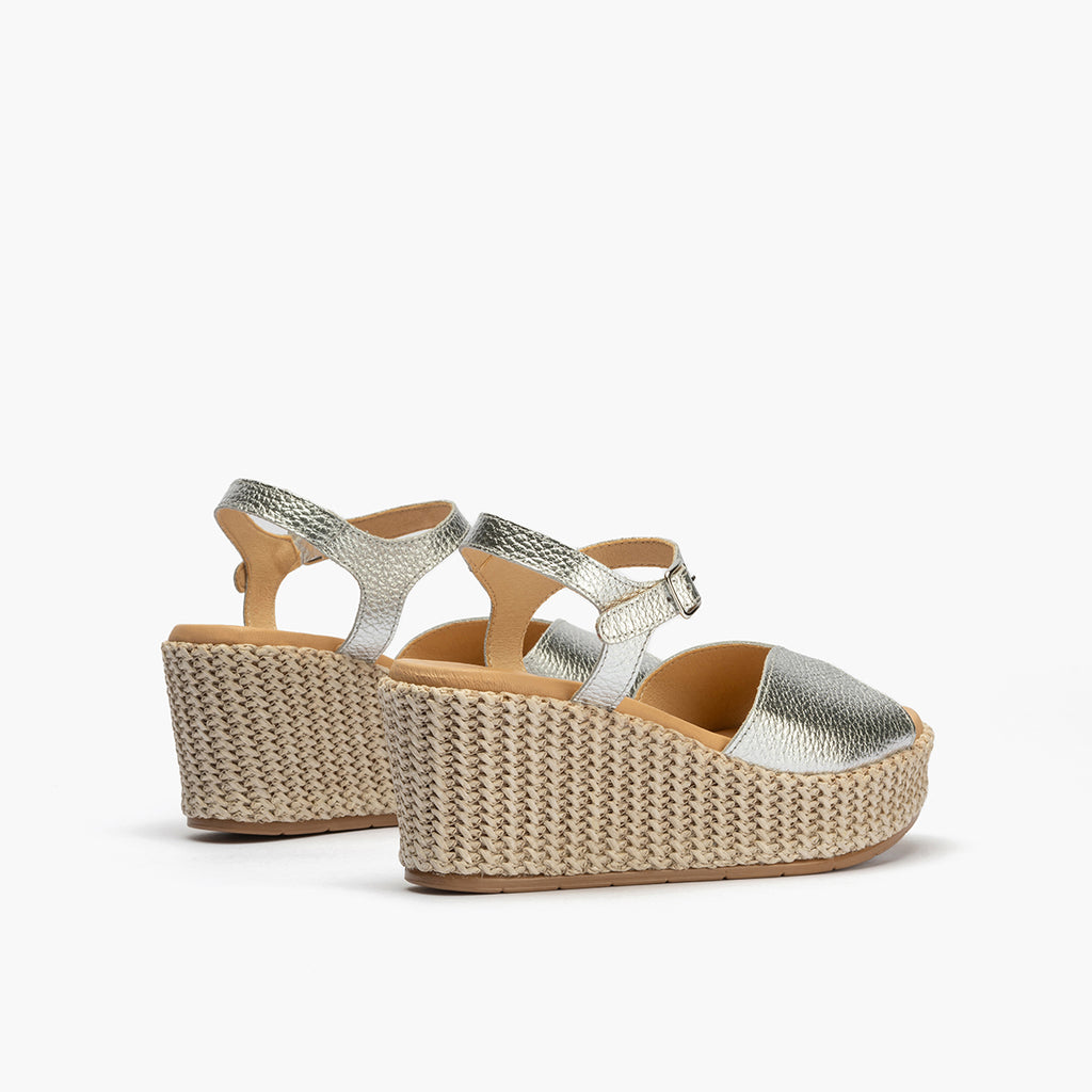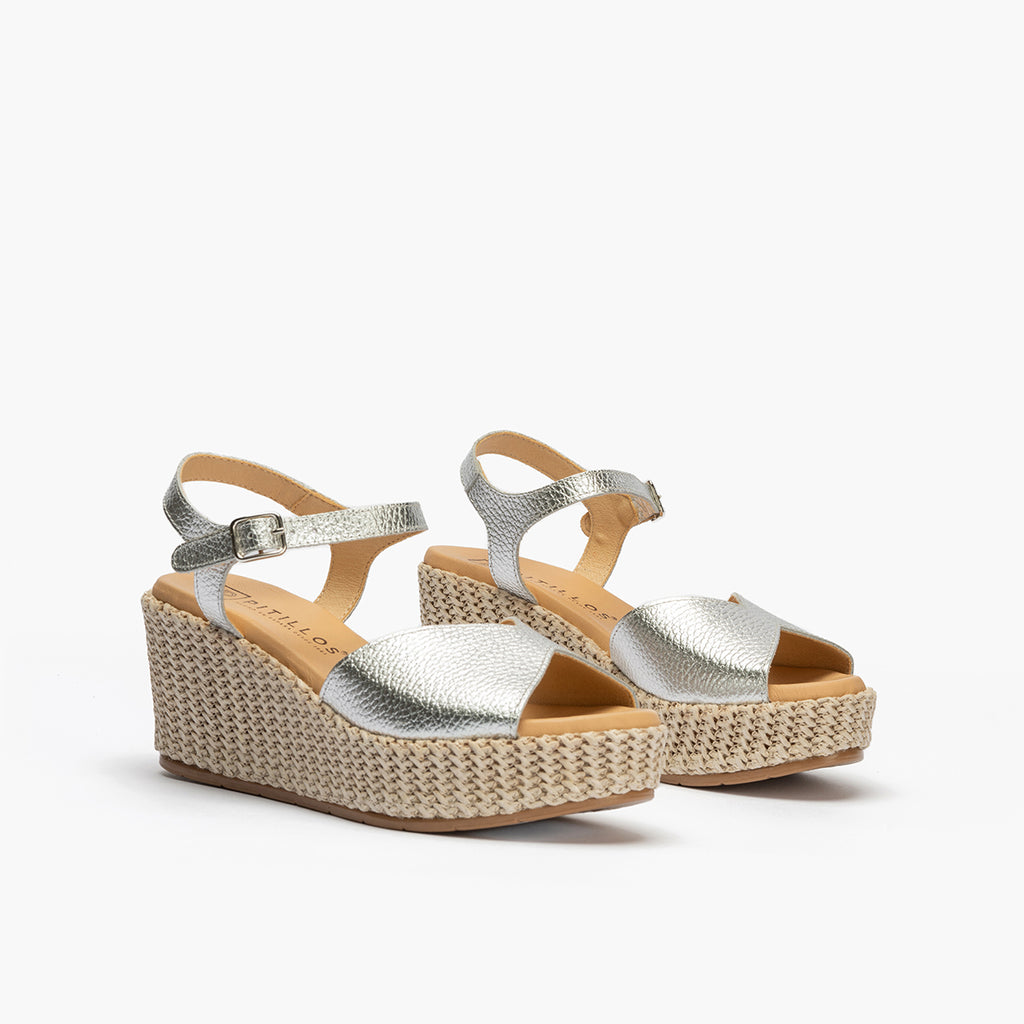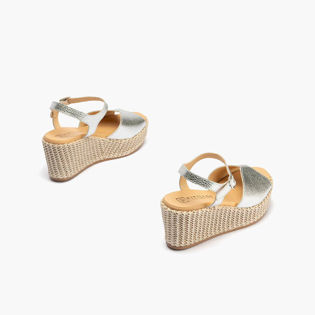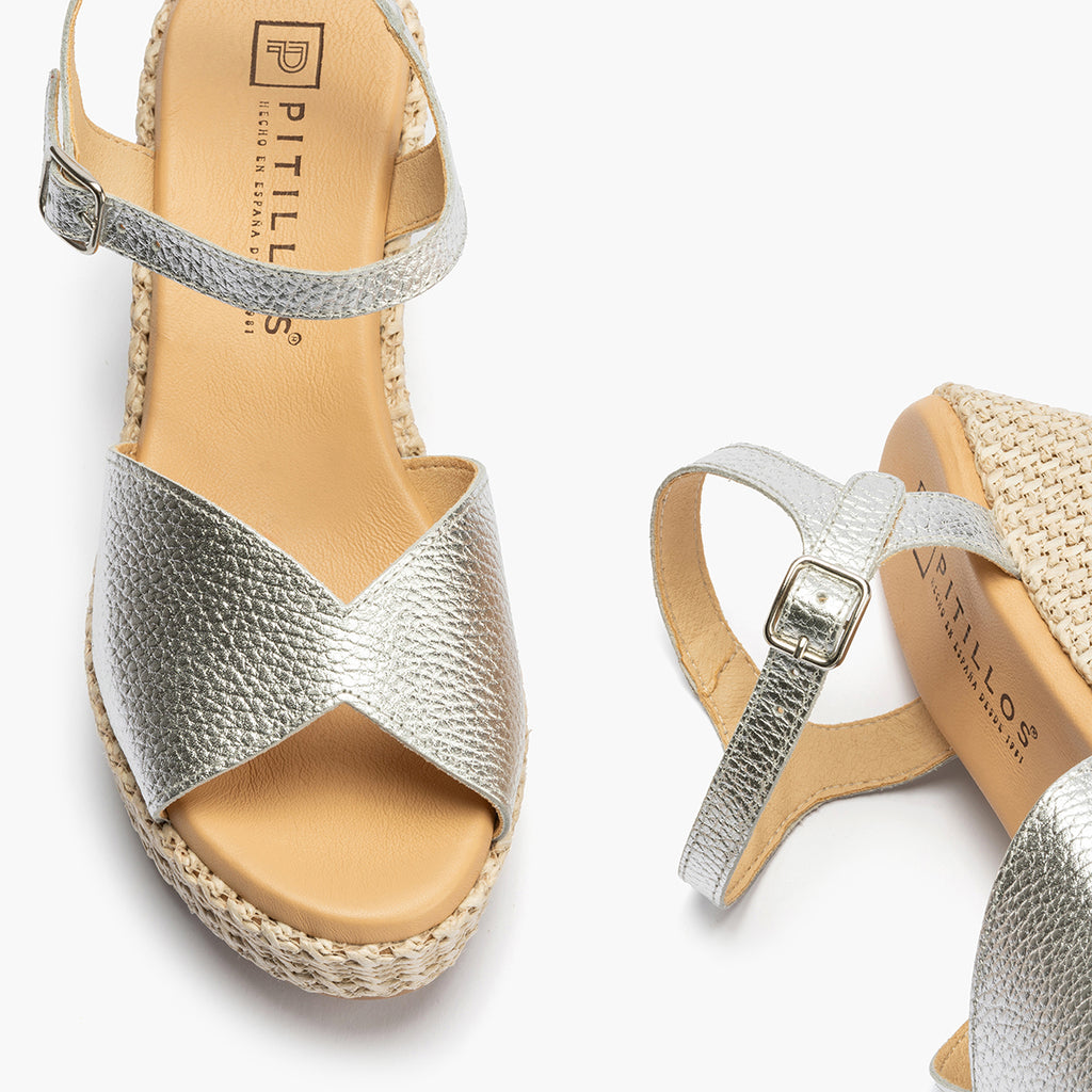 Sandalia pala alta mujer con hebilla en piel laminado PLATA