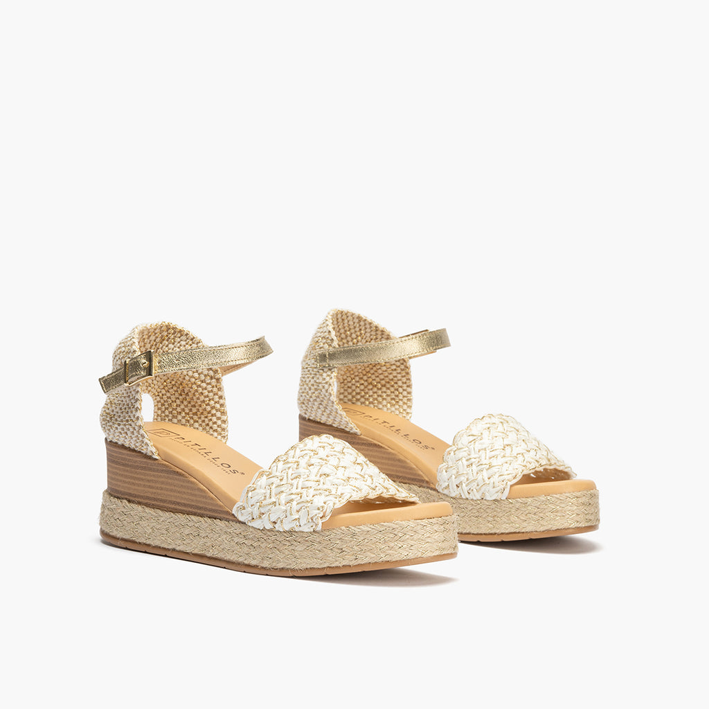 Sandalia pala banda mujer con hebilla en trenzado sintético BLANCO