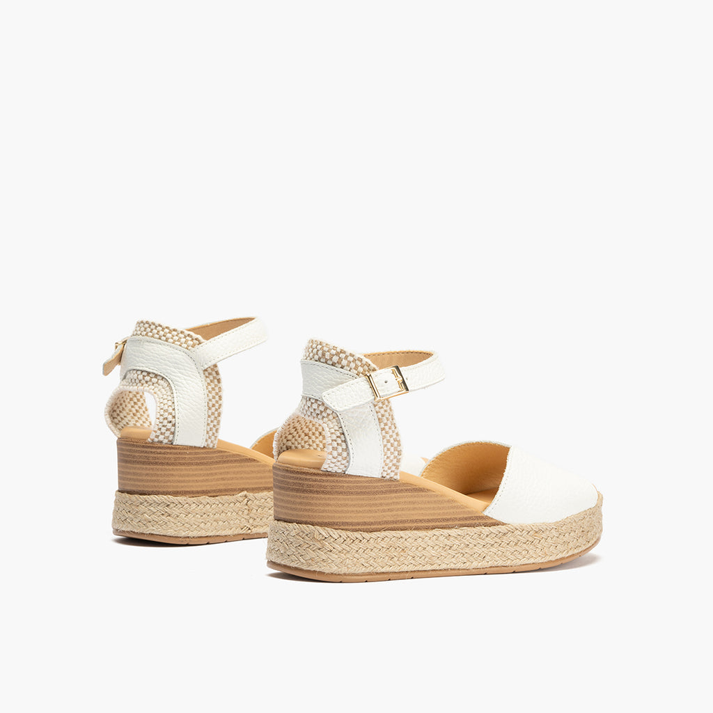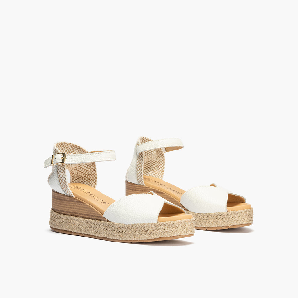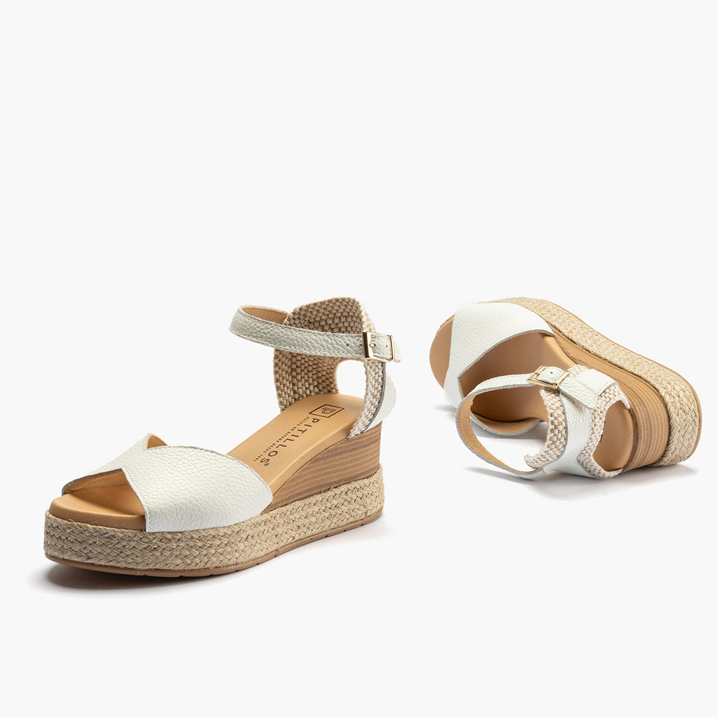 Sandalia pala mujer con hebilla en piel laminado BLANCO