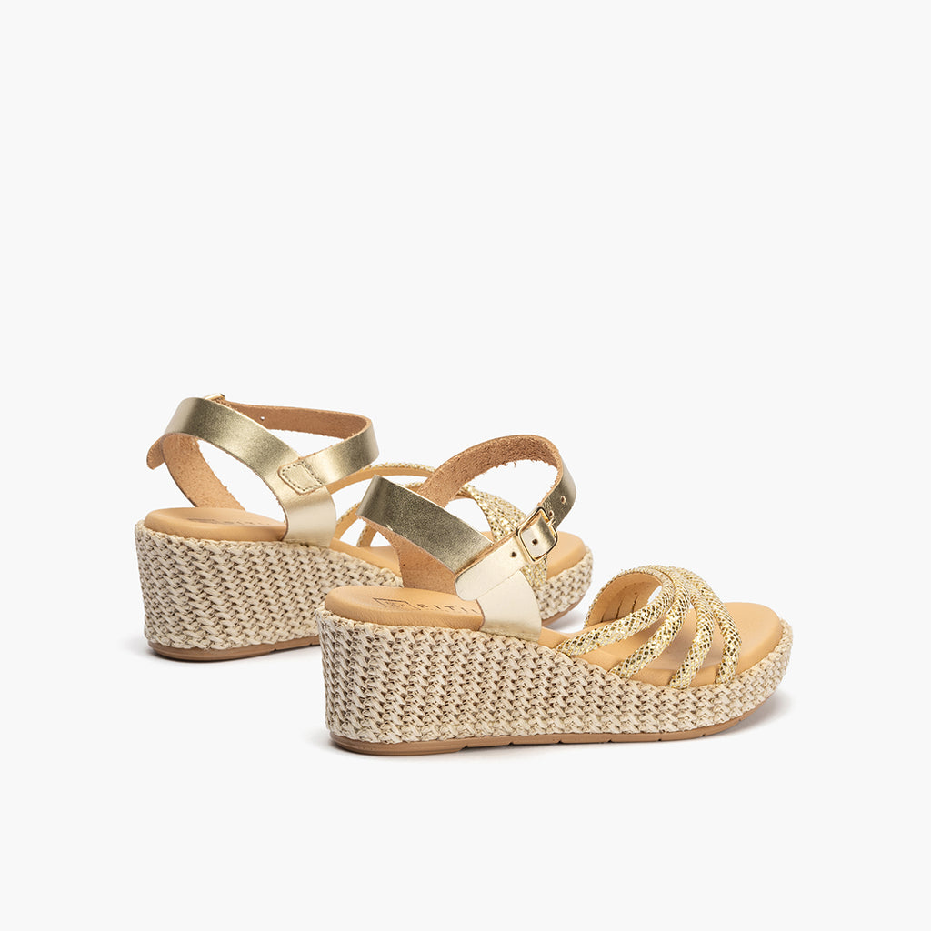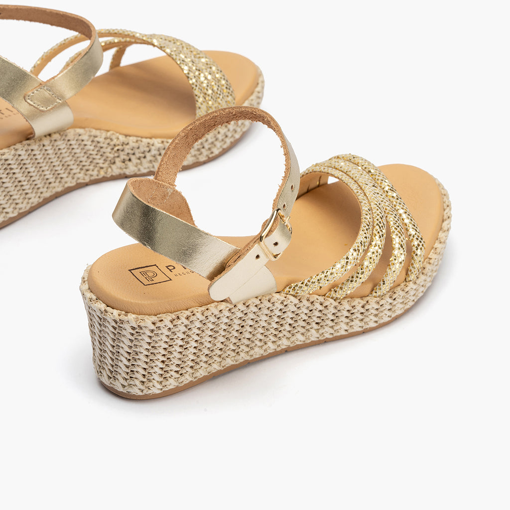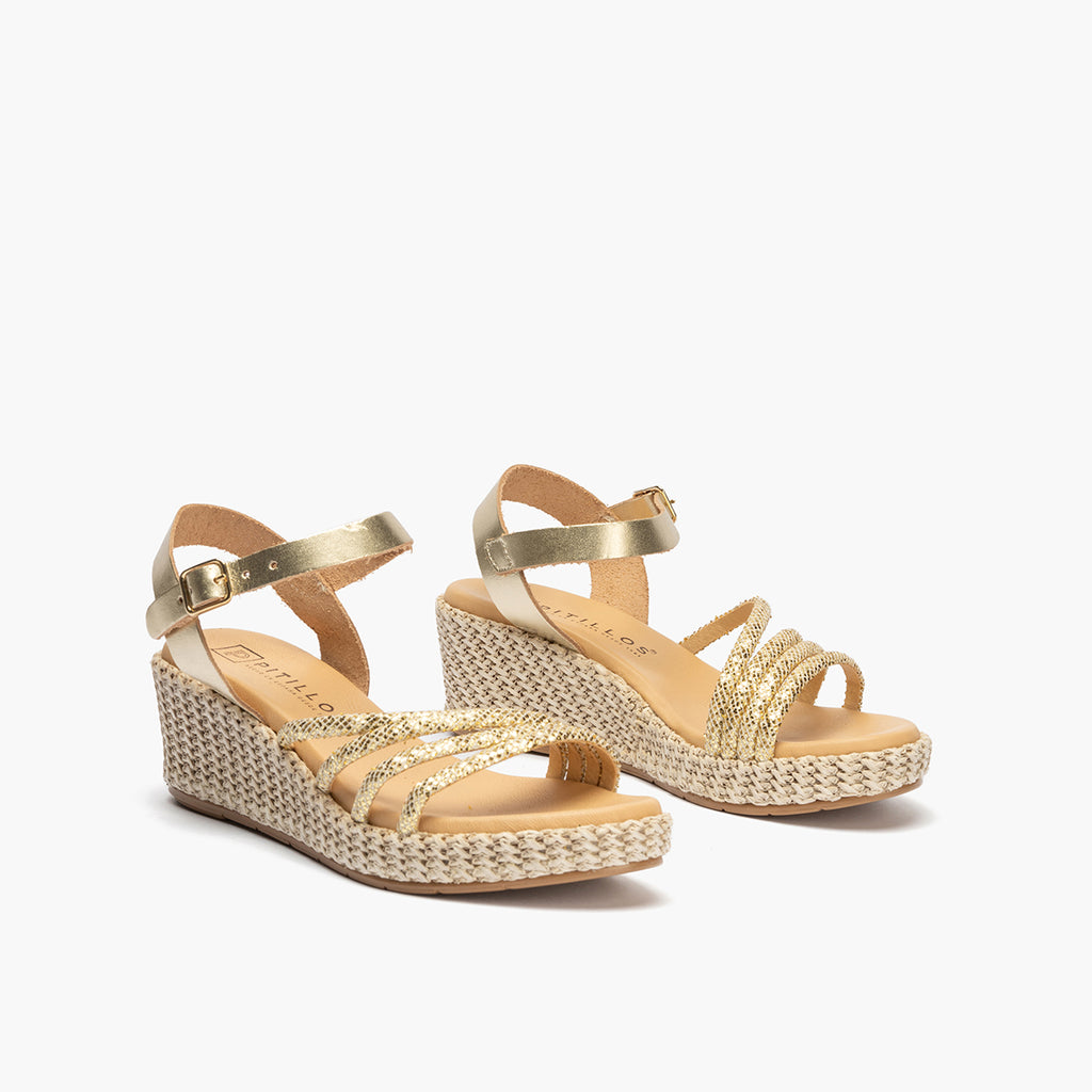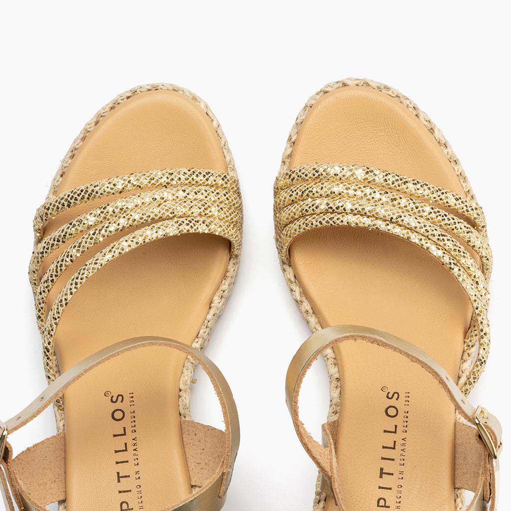 Sandalia pala tiras mujer con hebilla en glitter ORO