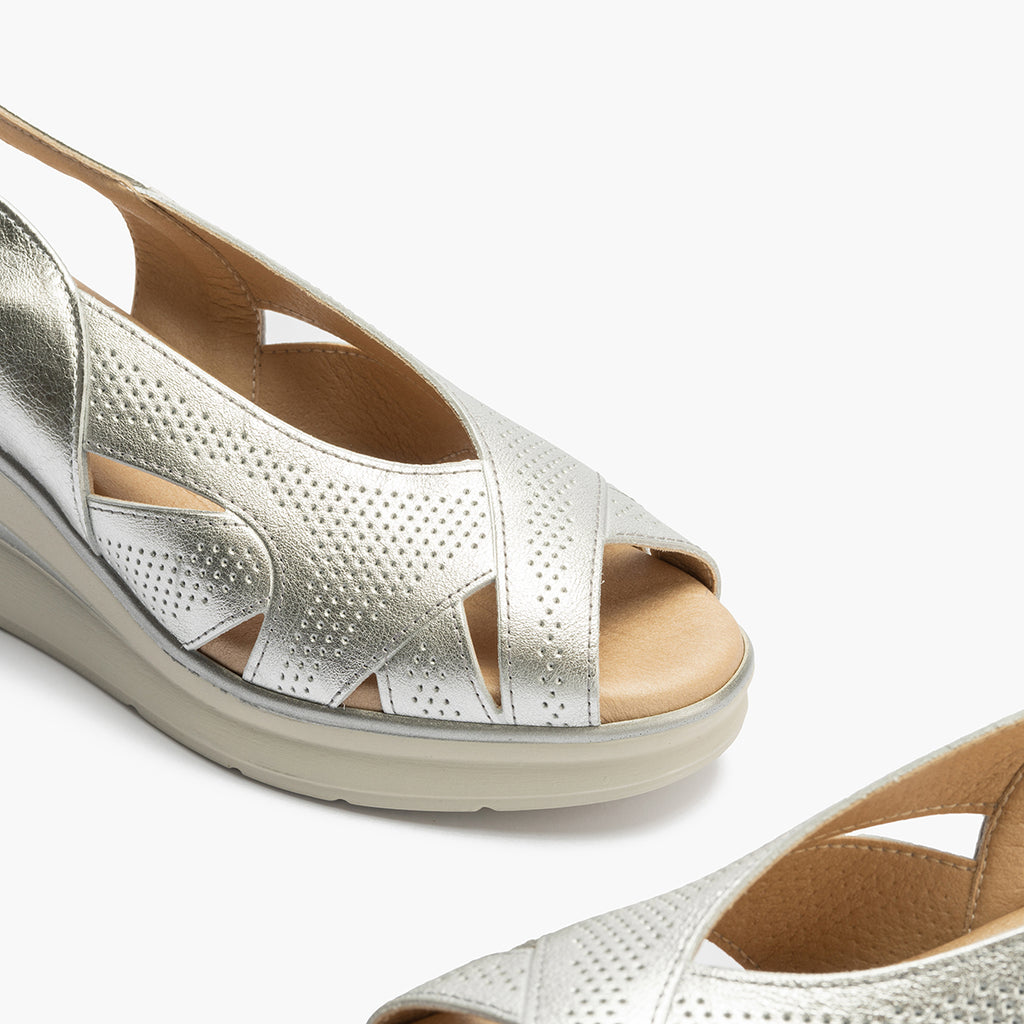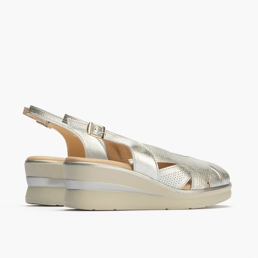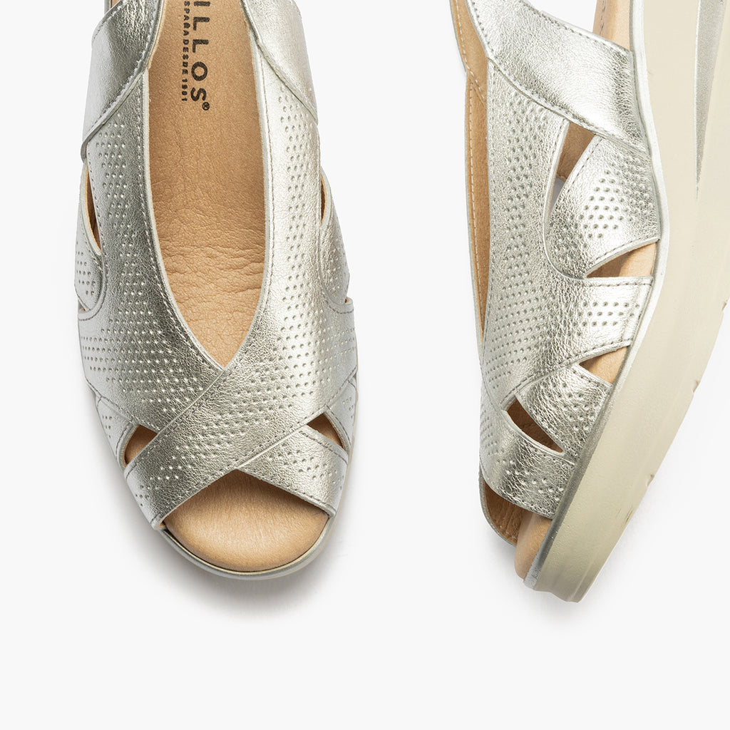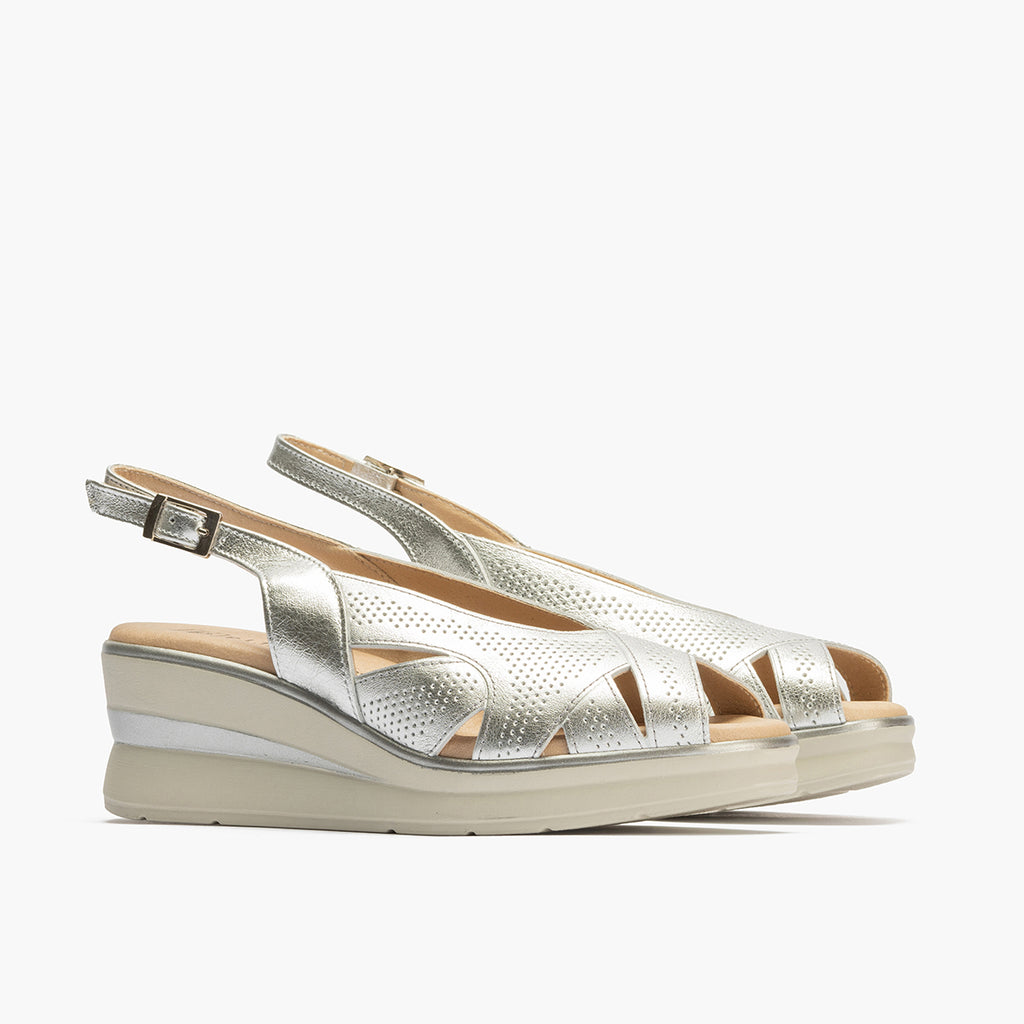 Sandalia plataforma con micropuntos mujer con hebilla en piel laminado PLATA