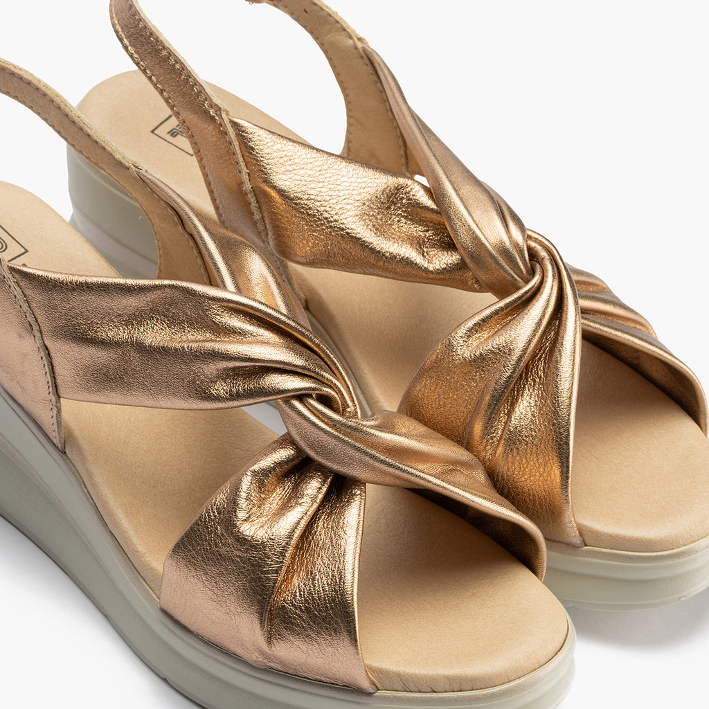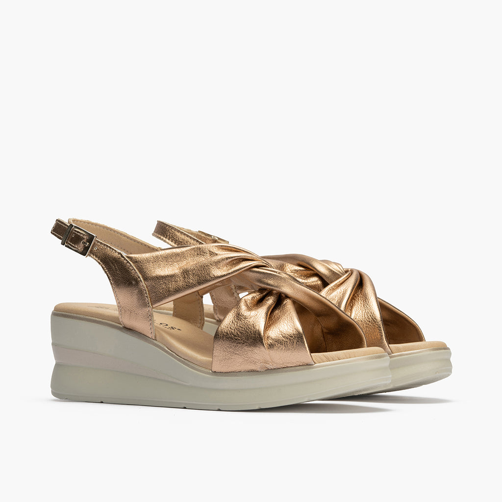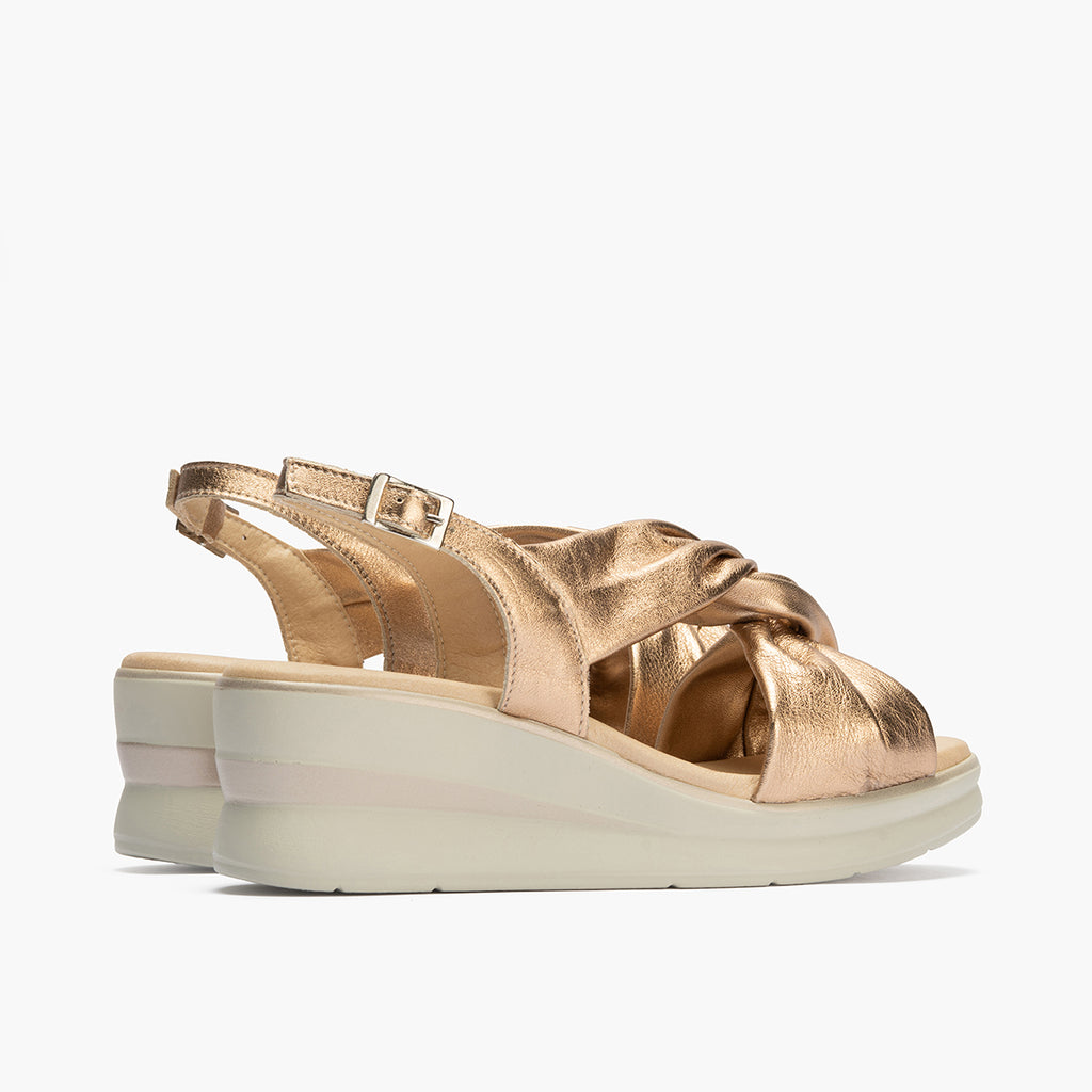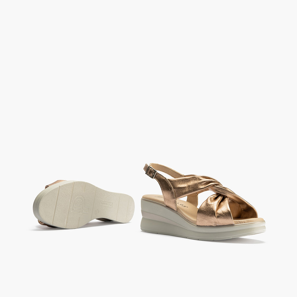 Sandalia plataforma tubulares cruzados mujer con hebilla en piel laminado ROSA