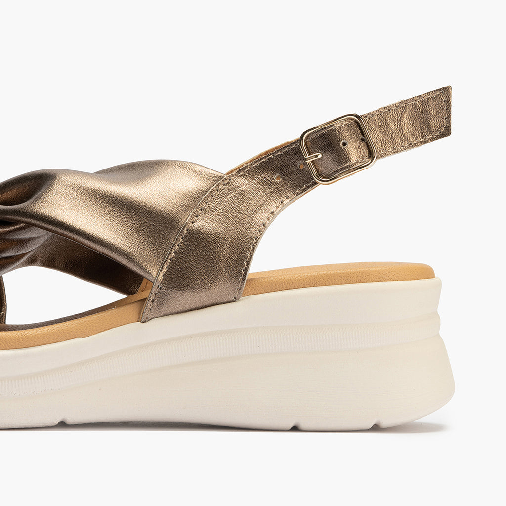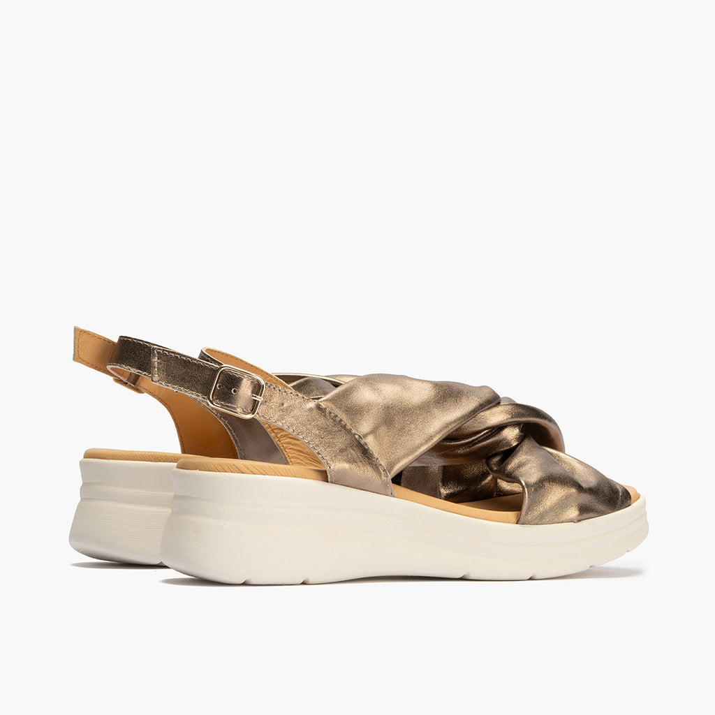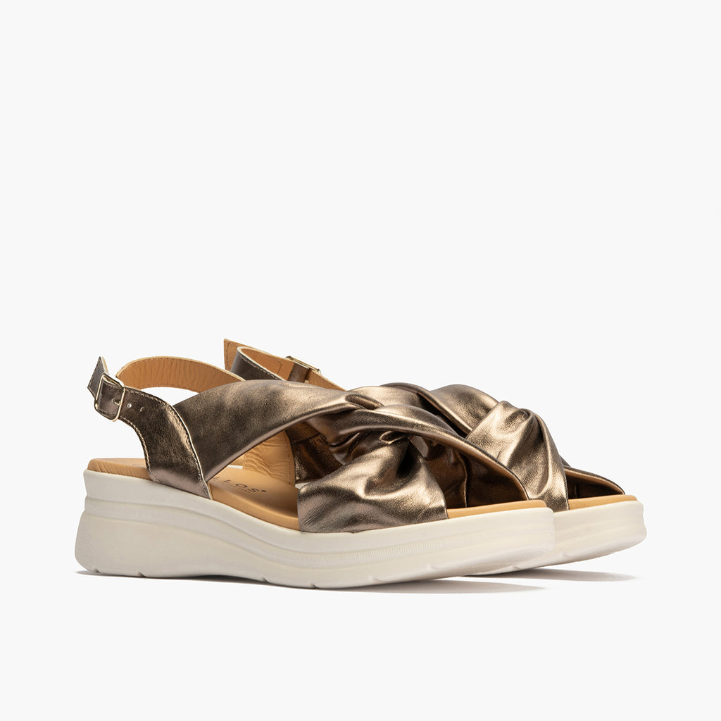 Pensado para ofrecer la máxima comodidad durante todo el día. Confeccionada en Piel Laminada para un toque elegante y diferente. Su interior incorpora forro técnico textil que aporta extra-confort y sensación térmica óptima, perfecto para primavera verano. Altura de cuña: 5 cm.