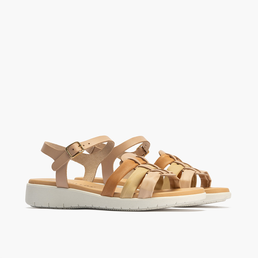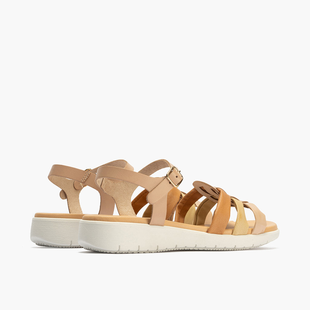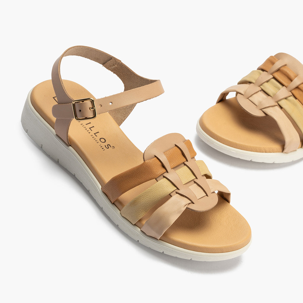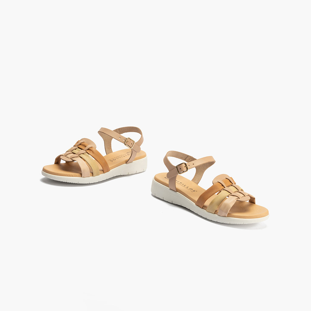 Sandalia tubulares mujer con hebilla en piel combinada MARRON CLARO