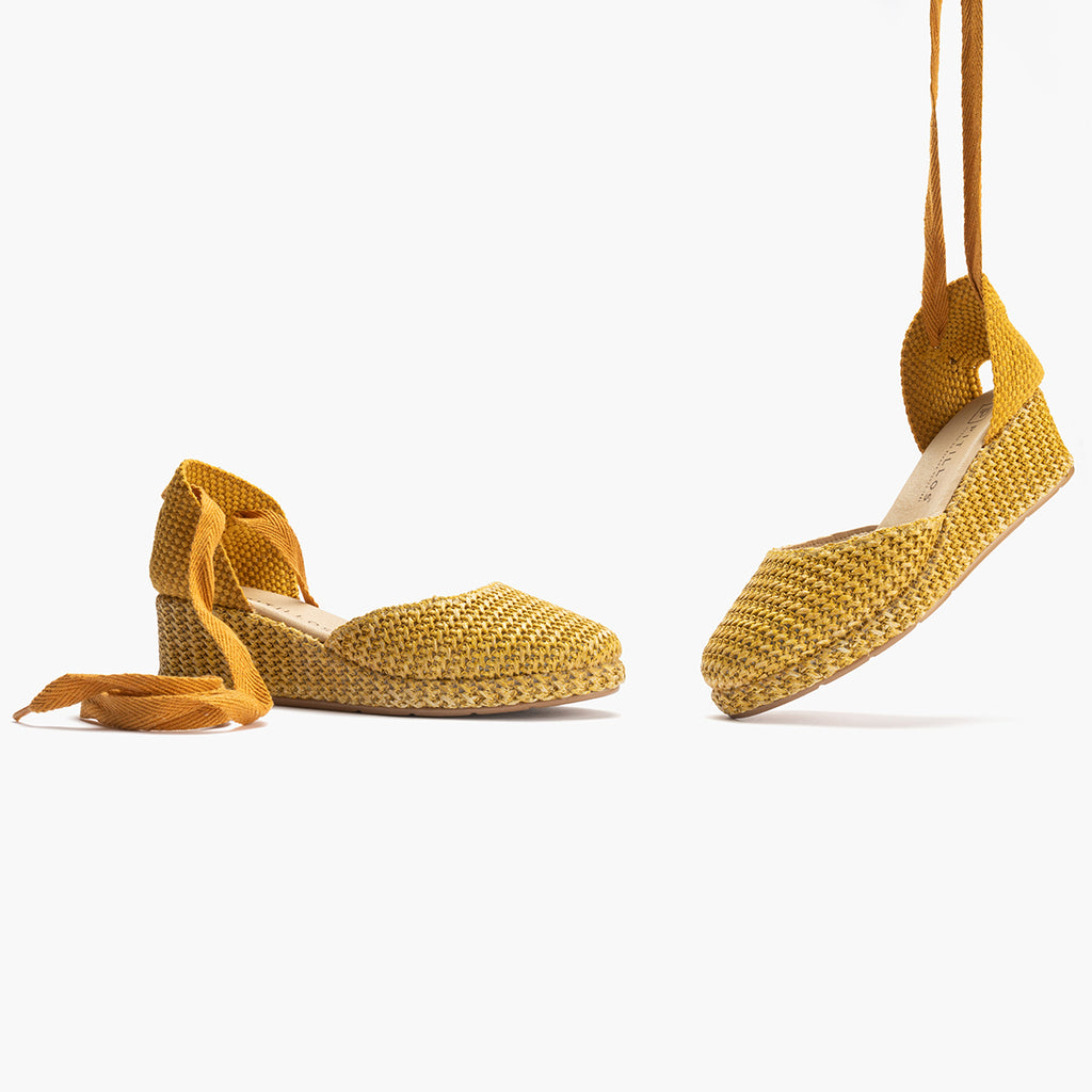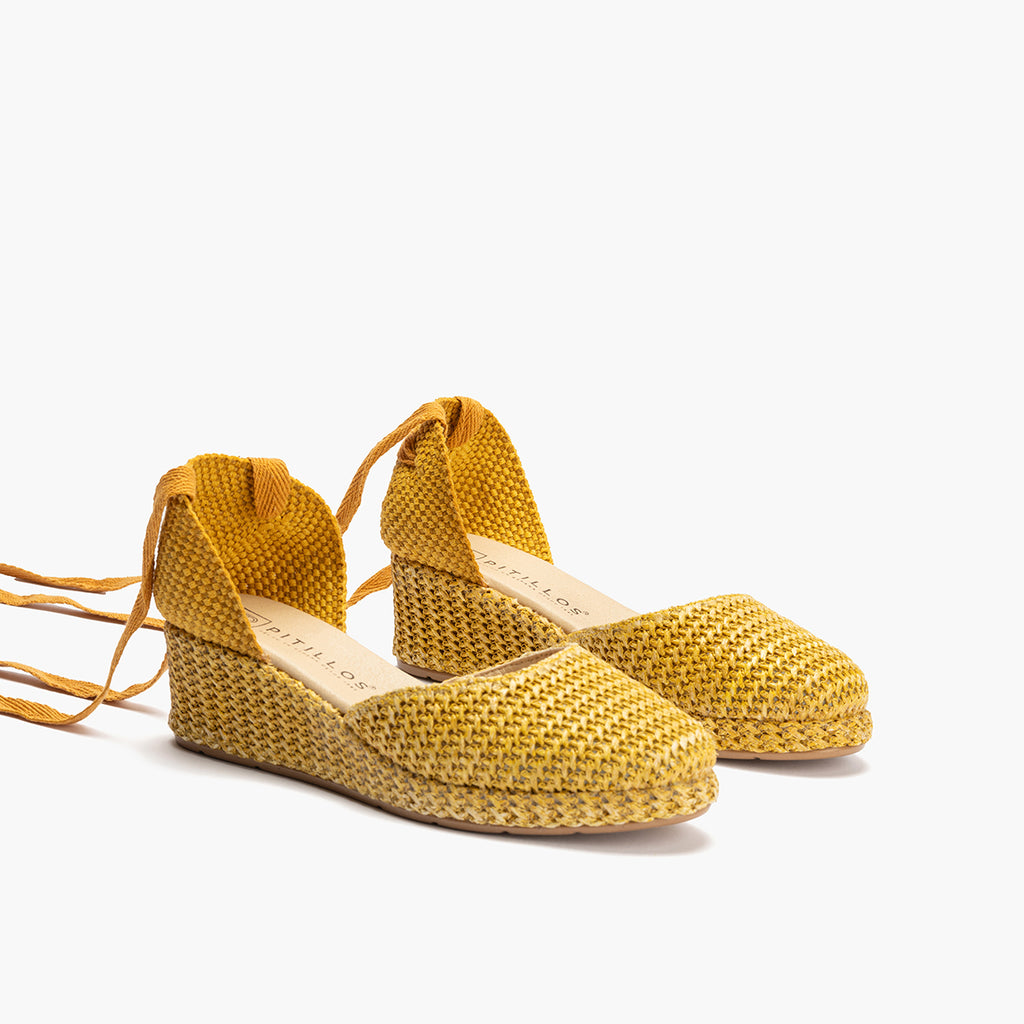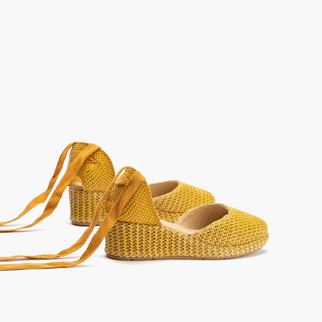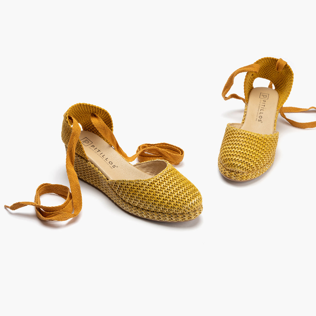 Valenciana con cuña y pala mujer con cintas en rafia AMARILLO