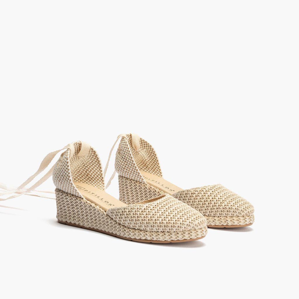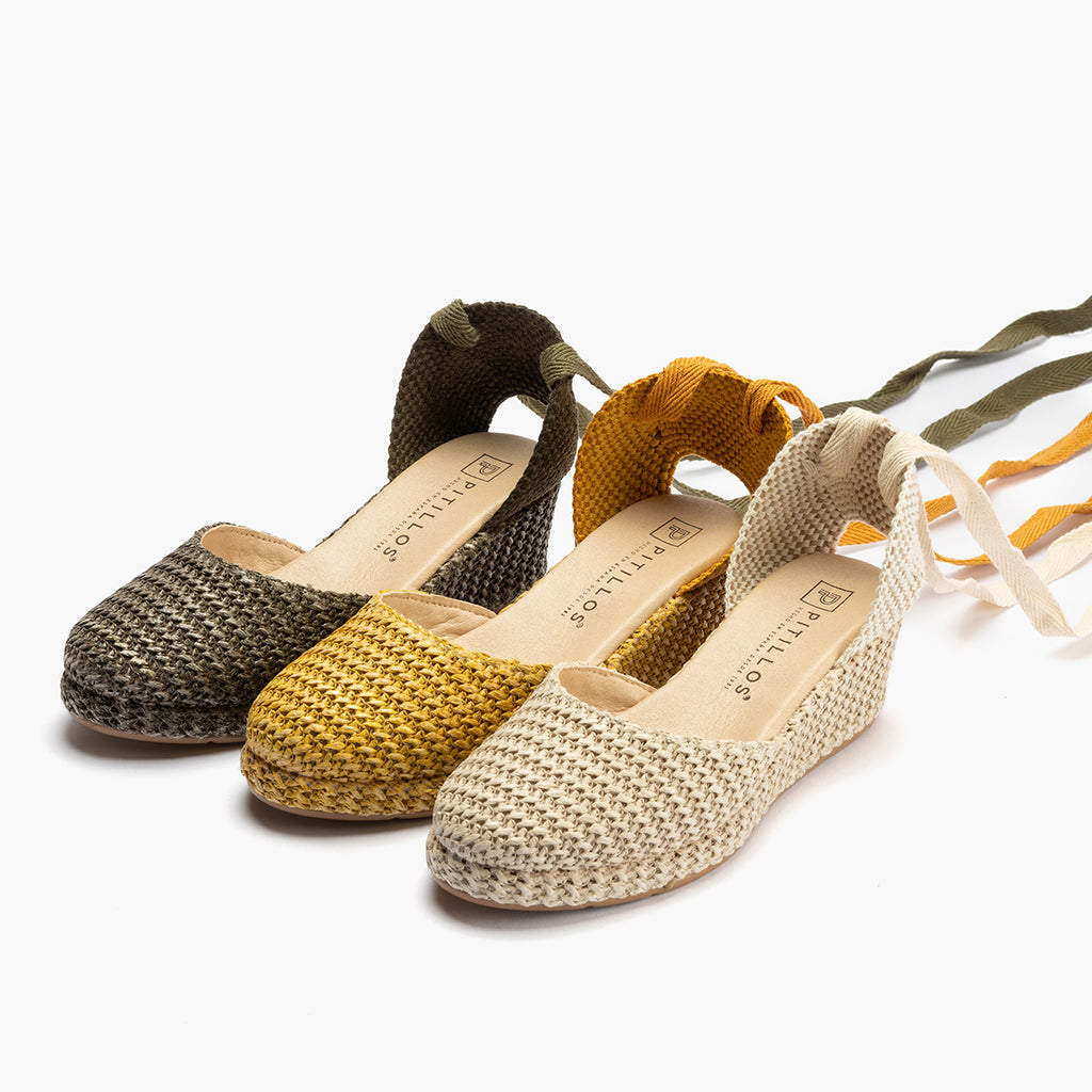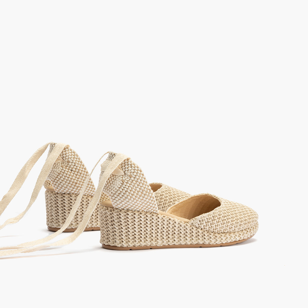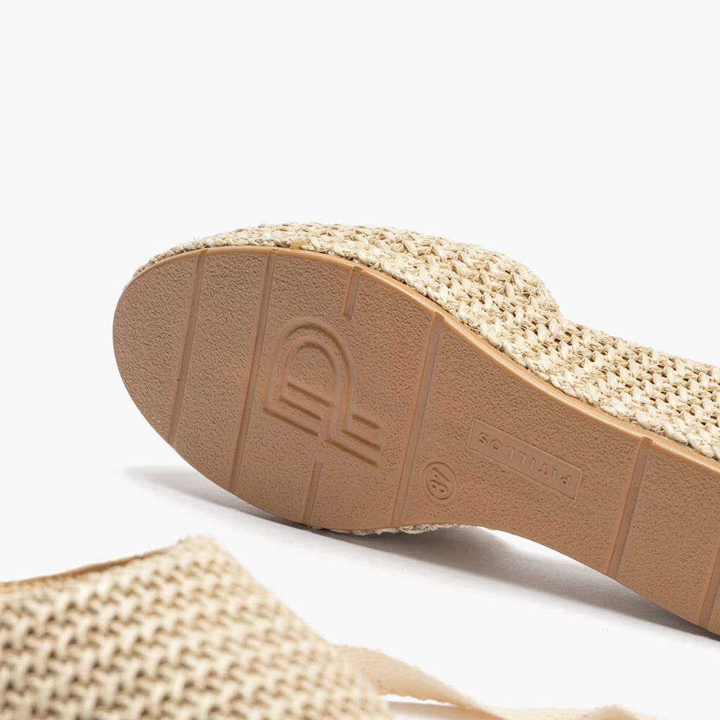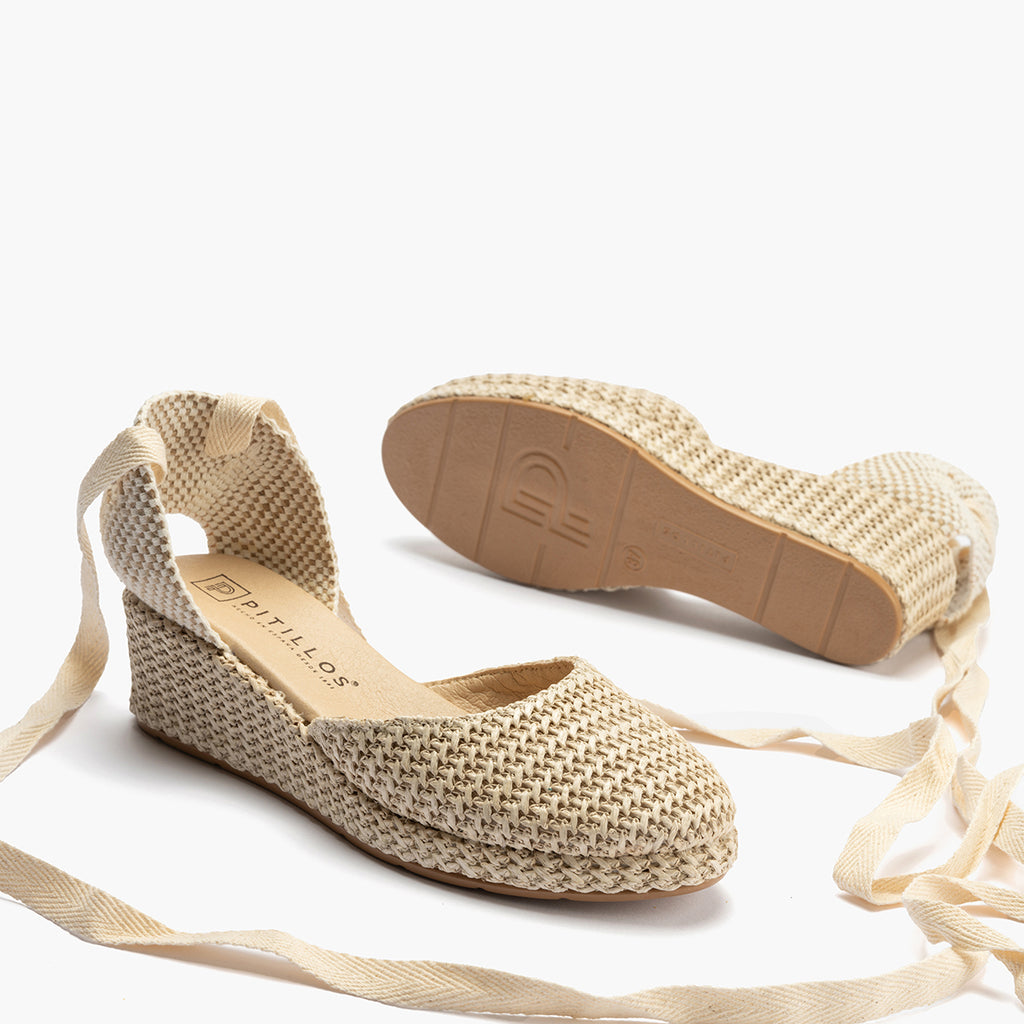 Valenciana con cuña y pala mujer con cintas en rafia MARRON CLARO