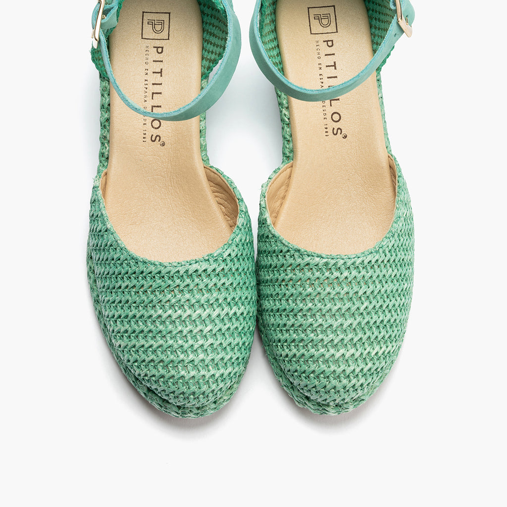 Altura de cuña: 5 cm. Ideal para la temporada primavera - verano 2025. Confeccionada en Rafia para un toque elegante y diferente. La suela de poliuretano garantiza ligereza y resistencia.
