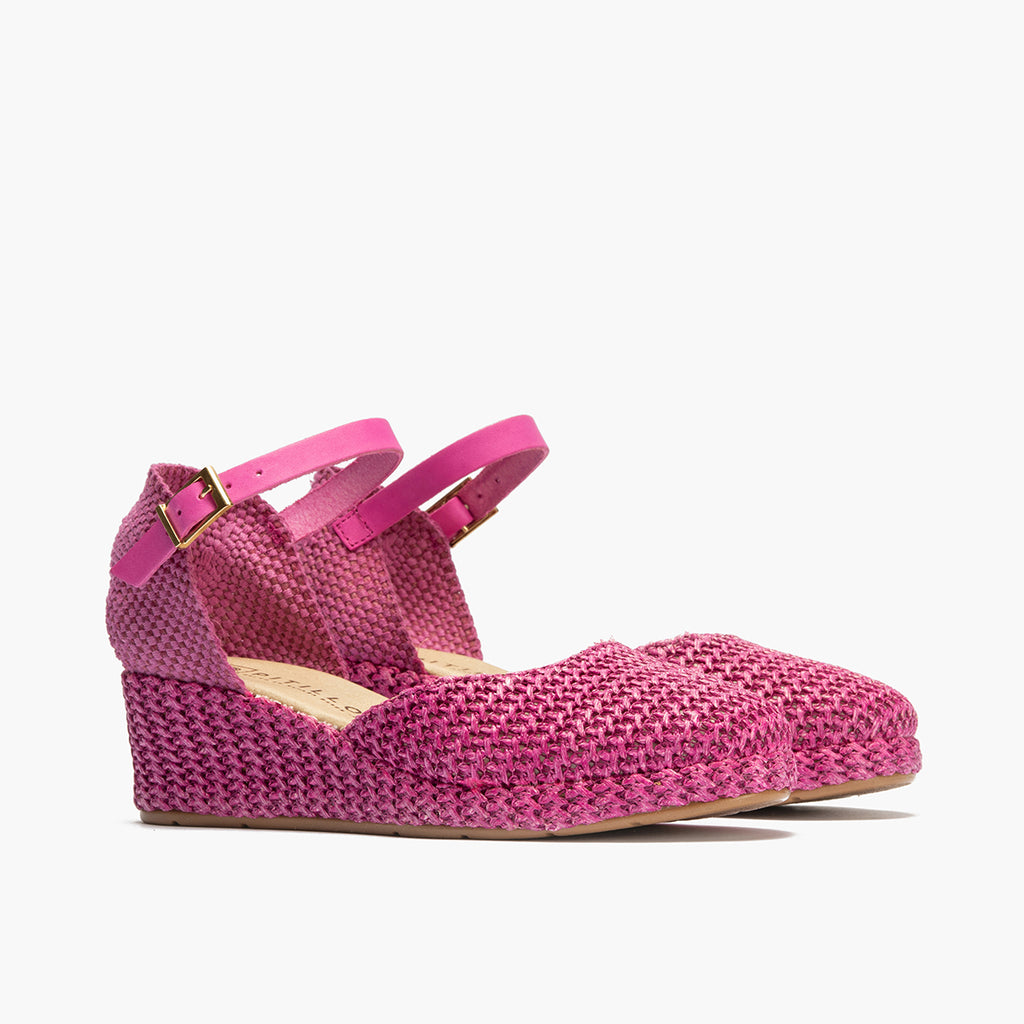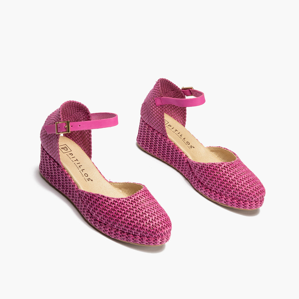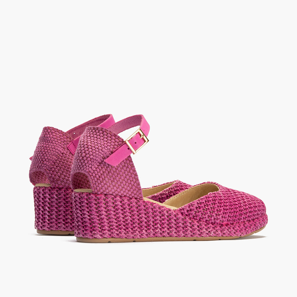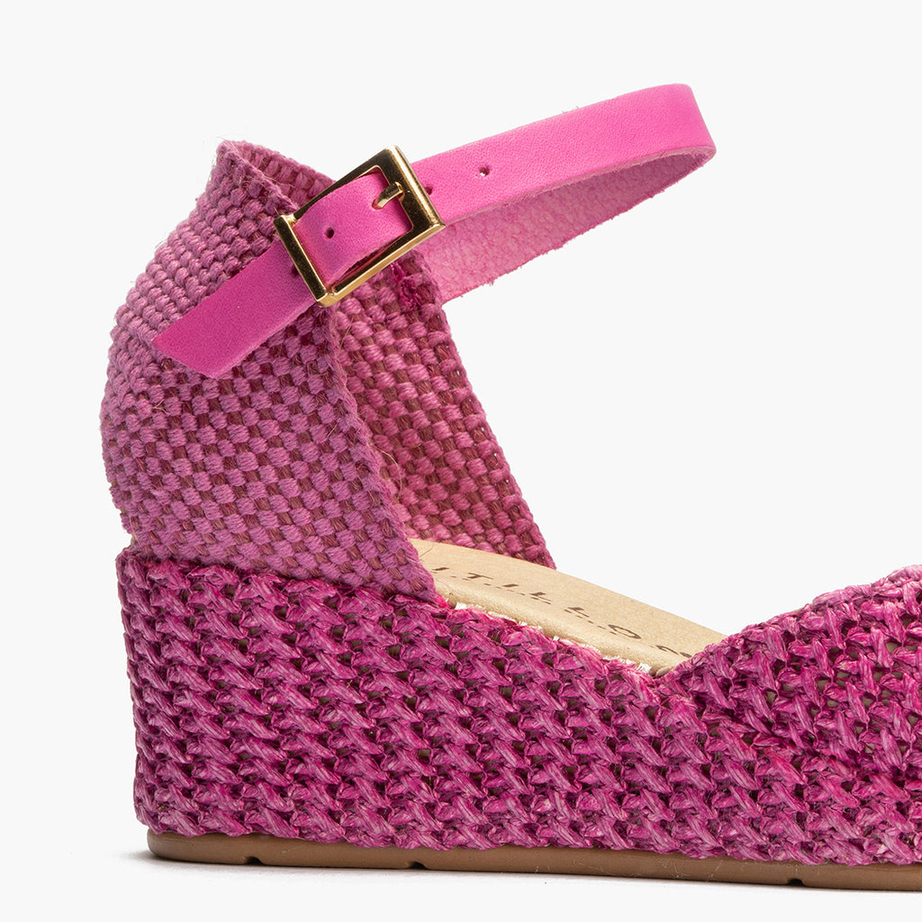 Valenciana cuña pala mujer con hebilla en rafia ROSA