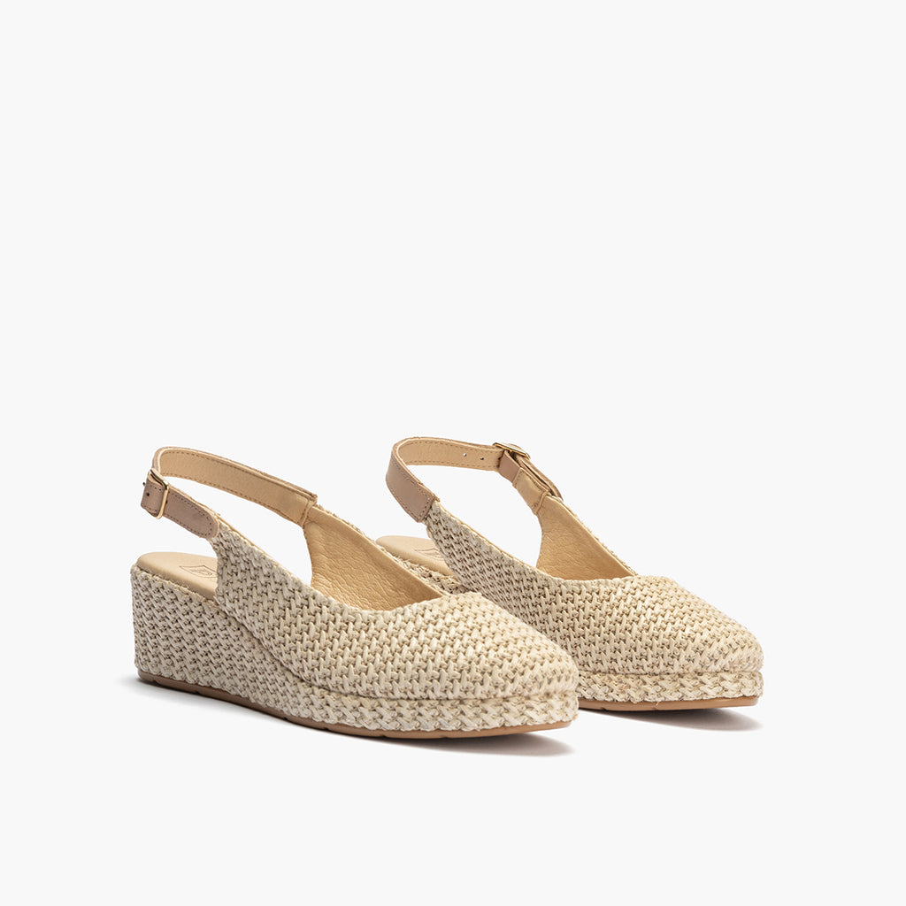 Valenciana salon con talón abierto mujer con hebilla en rafia MARRON CLARO