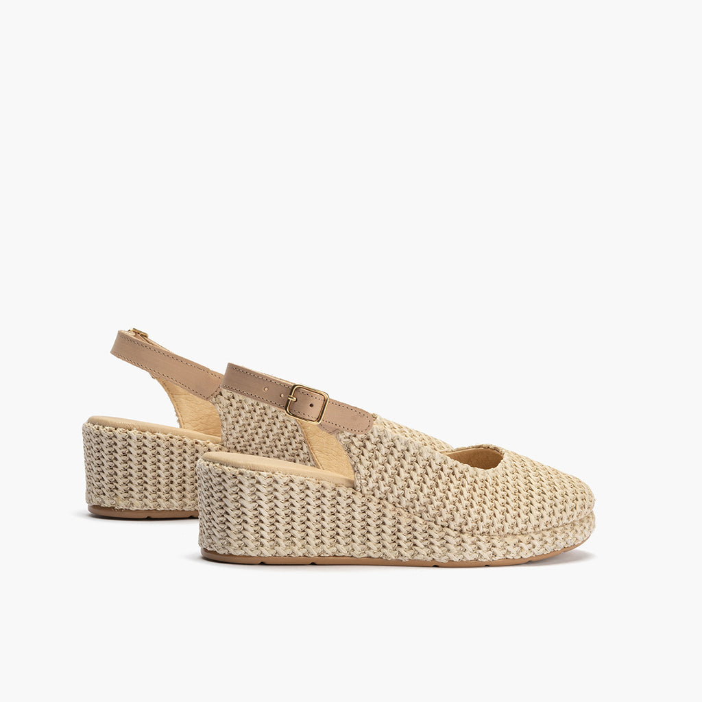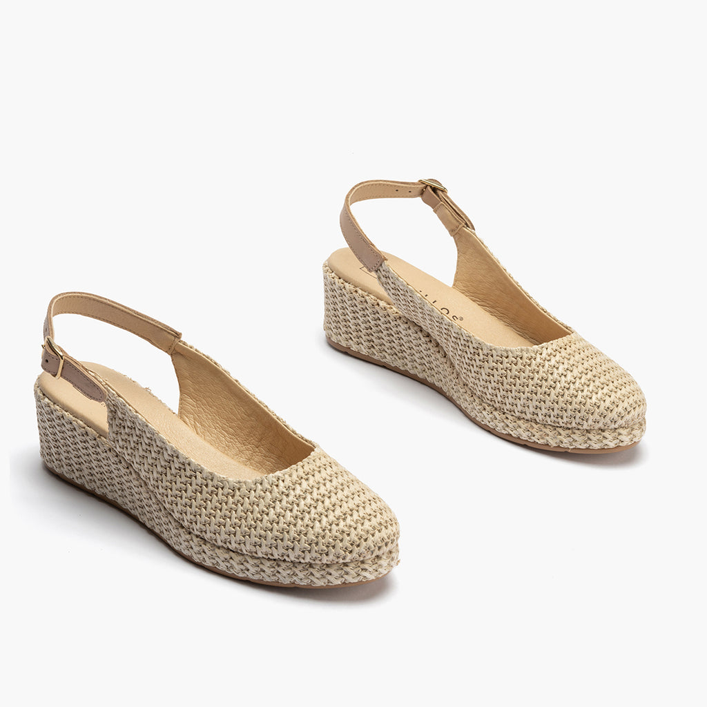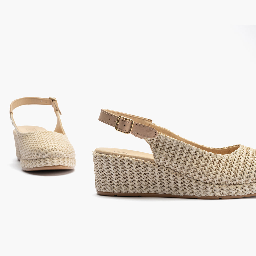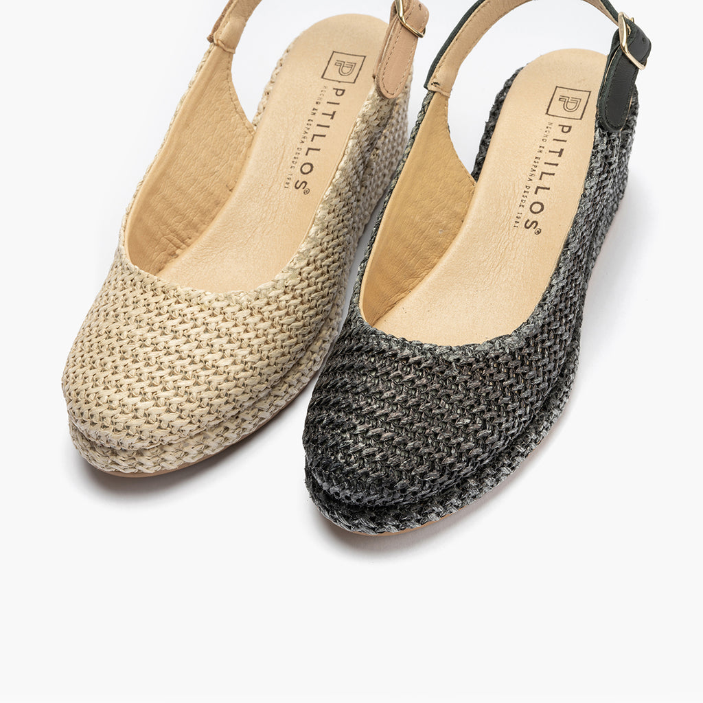 Confeccionada en Rafia para un toque elegante y diferente. Ideal para la temporada primavera - verano 2025. Pensado para ofrecer la máxima comodidad durante todo el día. La suela de poliuretano garantiza ligereza y resistencia.