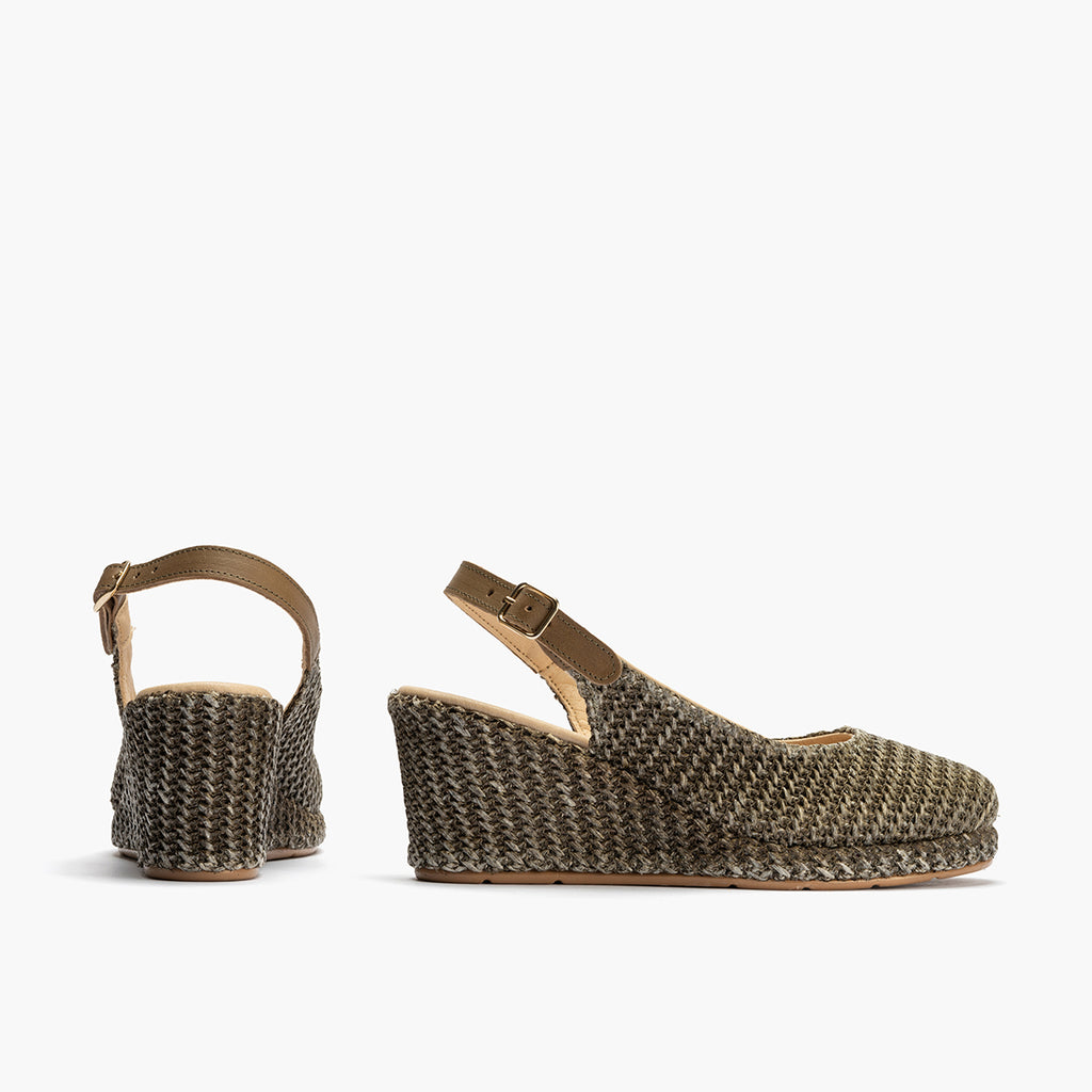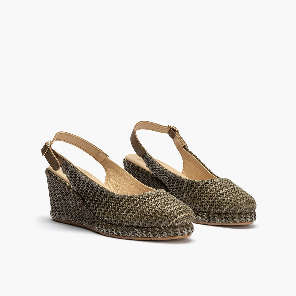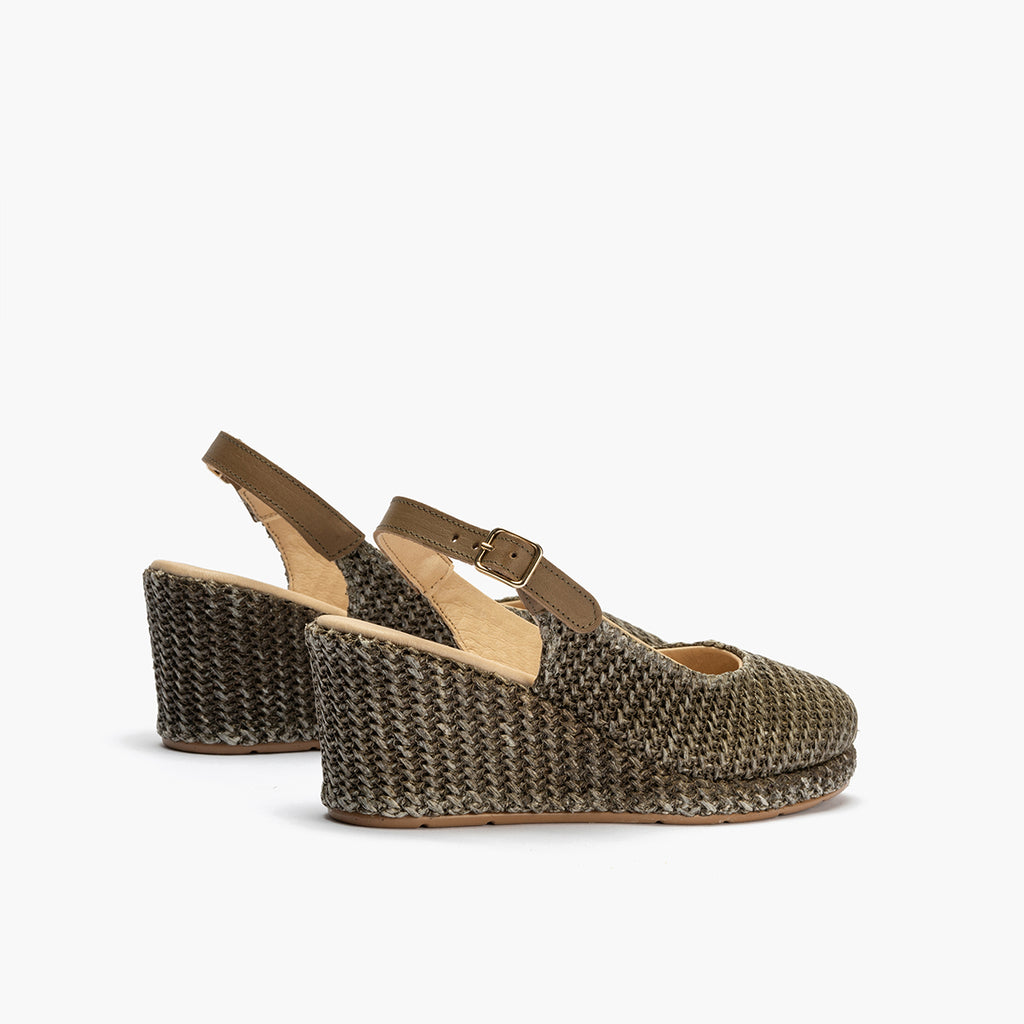 Valenciana salon mujer con hebilla en rafia VERDE
