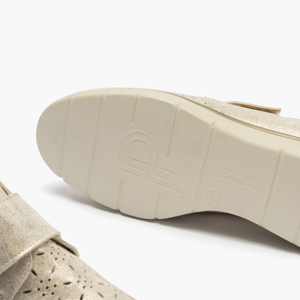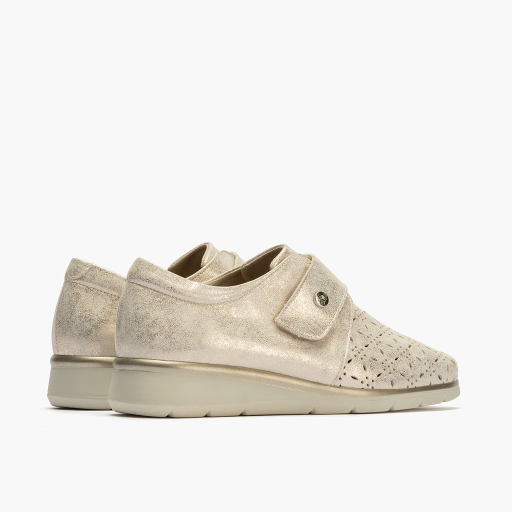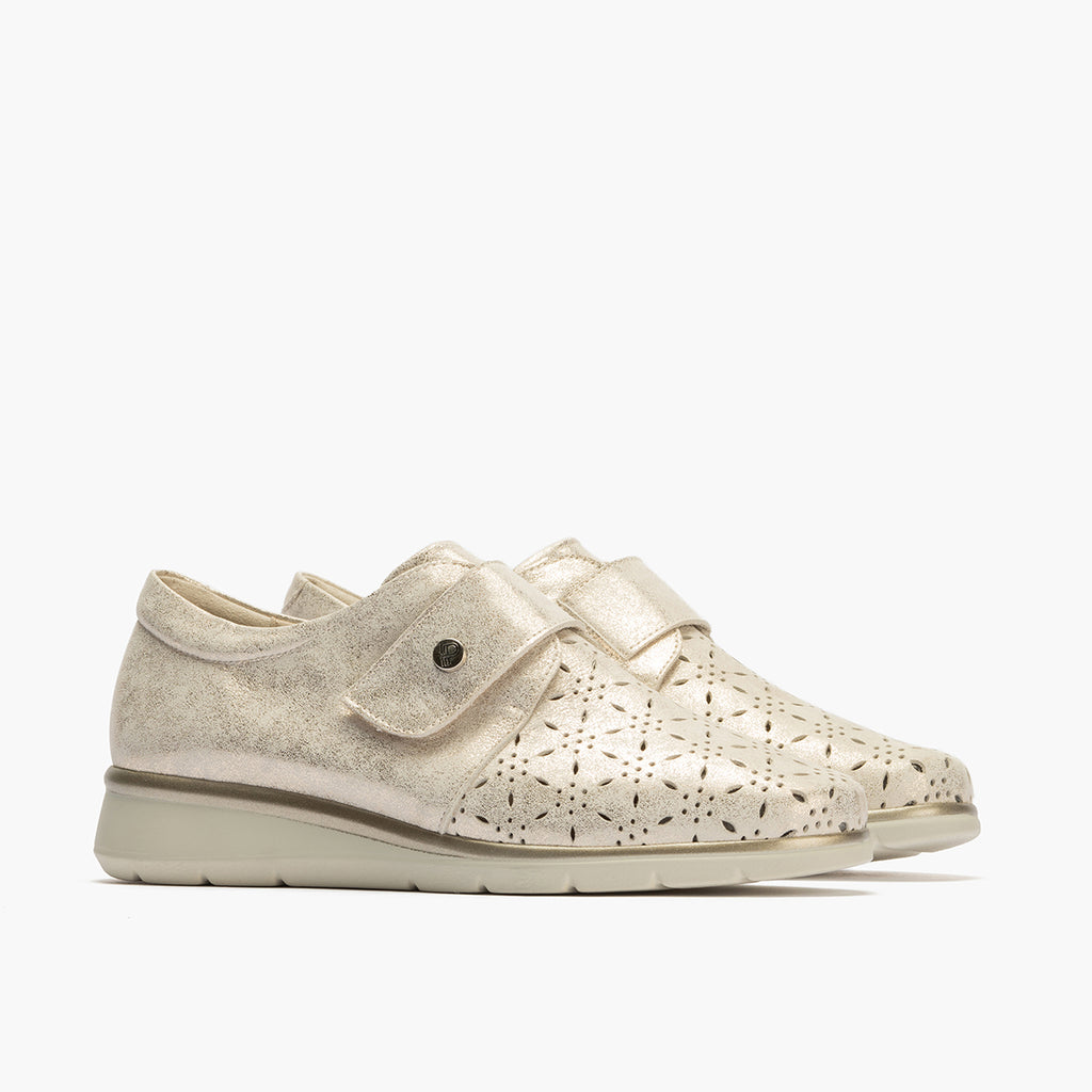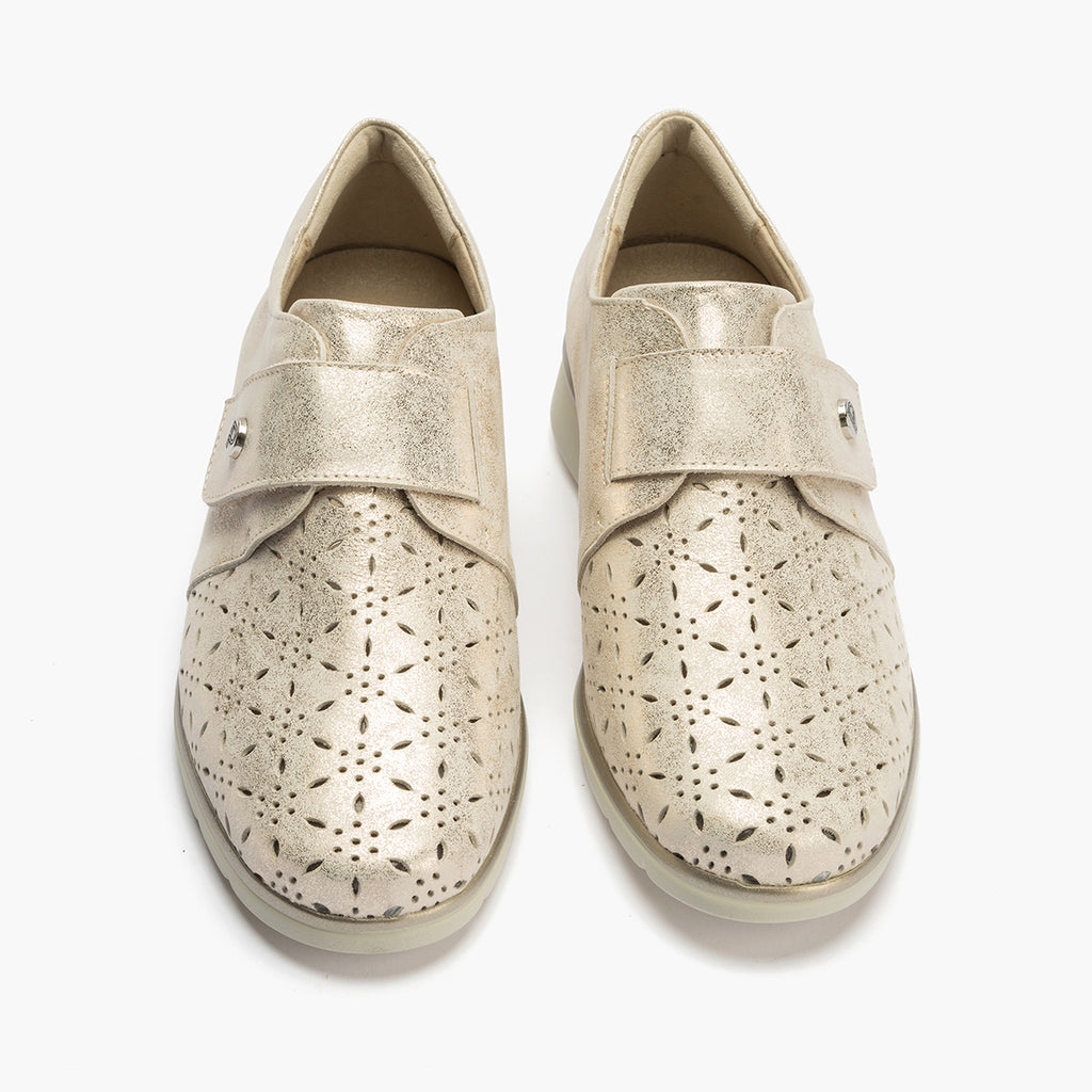 Blucher con picados mujer con velcro en piel fantasía ORO